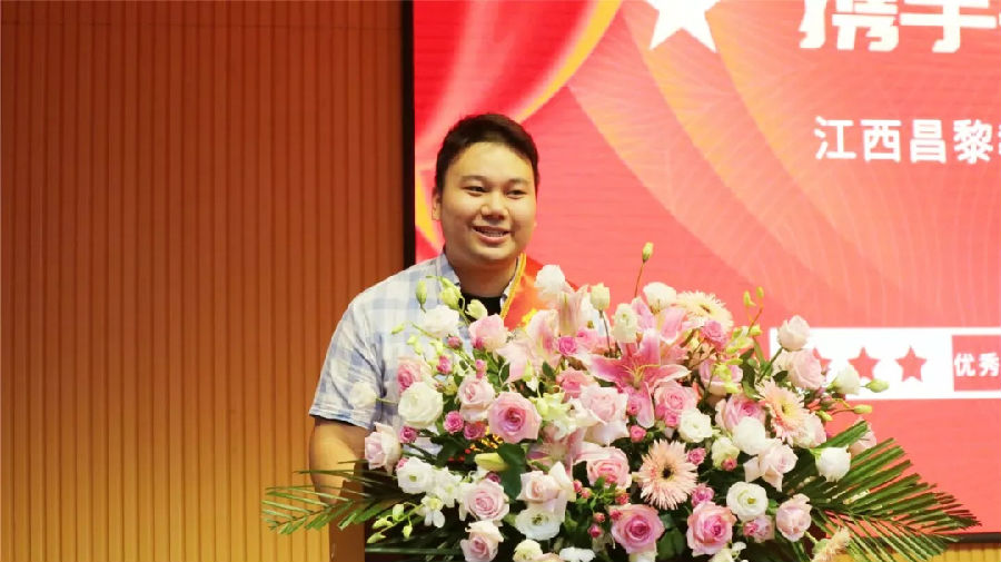 ▲江西長江理工專修學院優秀班主任代表余洪波發言